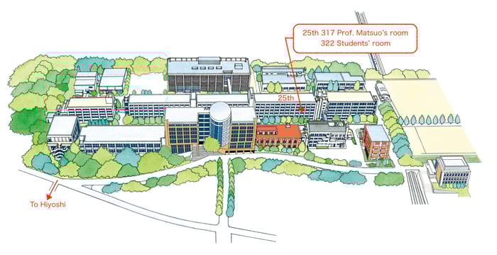 15-minutes walk from Hiyoshi station (Tokyu Toyoko Line, Meguro Line, or Yokohama Municipal Subway Green Line)